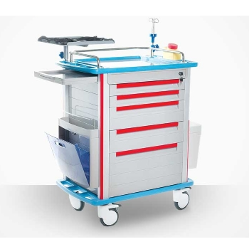 ABS搶救車 FG-A-02產品介紹:尺寸:850*520*1010MM1.材質:優質鋁合金,ABS,不銹鋼材料;2.車體內有5個抽屜,兩只小抽屜(高70MM),兩只抽屜(高140MM)一只大抽屜(高...